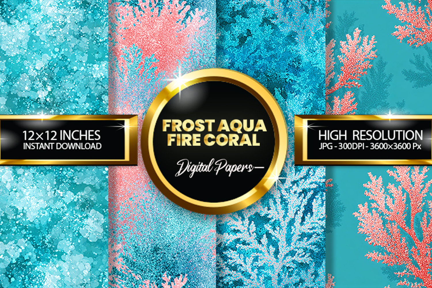 Frost Aqua Fire Coral Digital Papers - 04 Variations