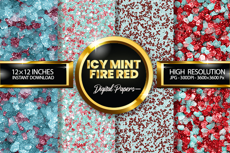 Icy Mint Fire Red Glitter Digital Papers - 04 Varitions