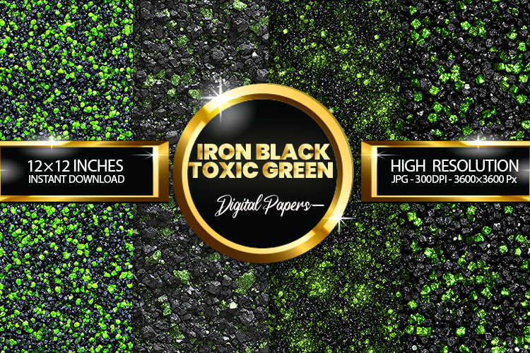Similar Design Products to Iron Black Toxic Green Glitter Digital Papers - 04 Varitions
