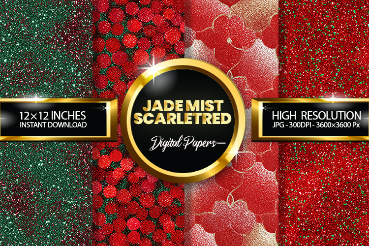Jade Mist ScarletRed Glitter Digital Papers -04 varitions