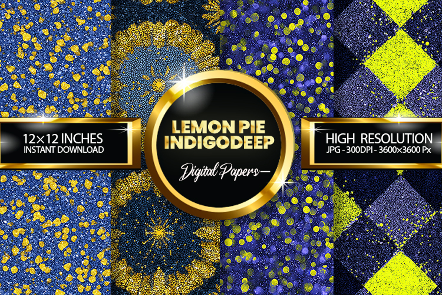 Lemon Pie Indigo Deep Glitter Digital Papers - 04 Varitions