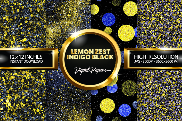 Lemon Zest Indigo Black Glitter Digital Papers - 04 Varition