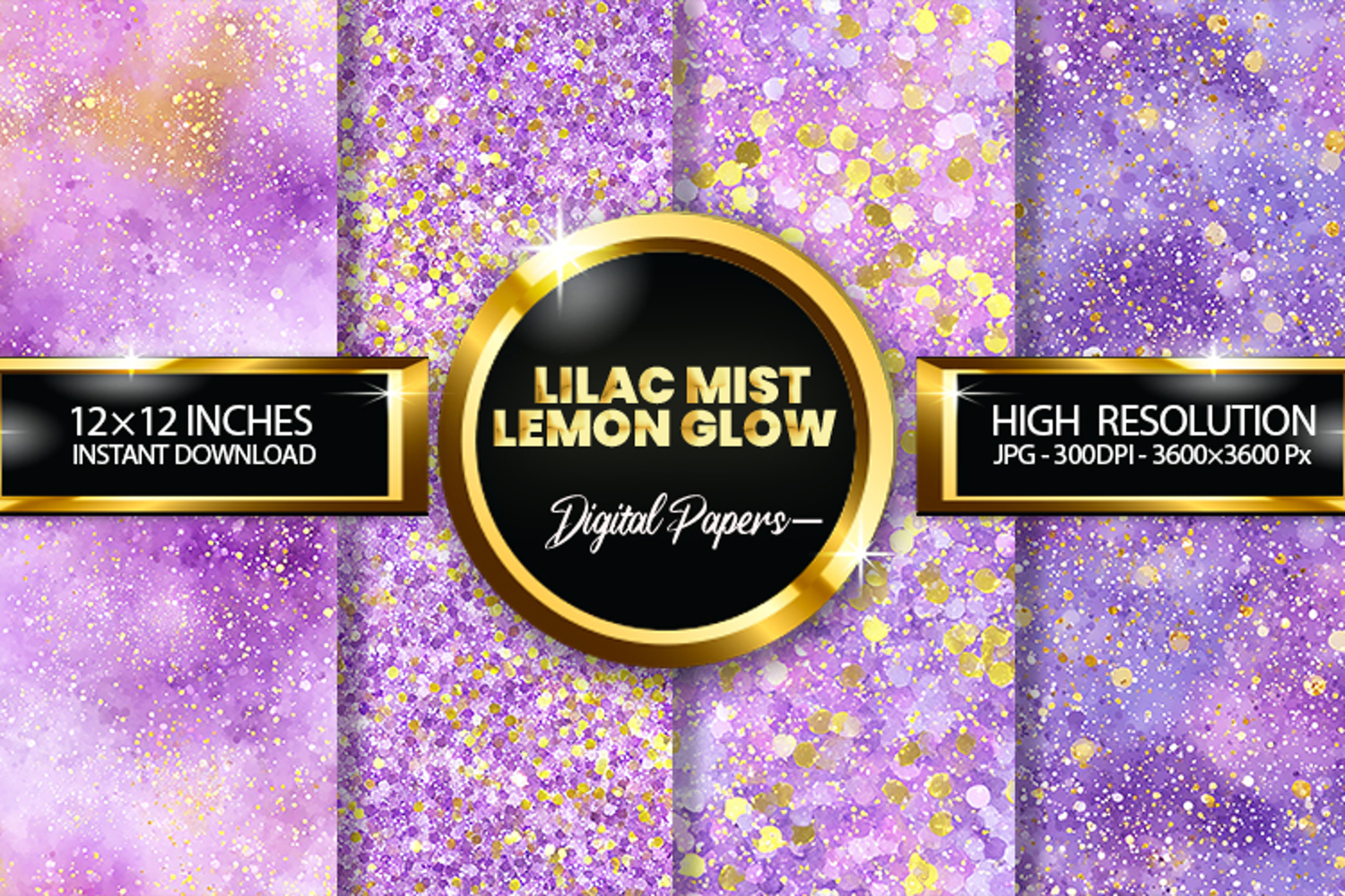 Lilac Mist Lemon Glow Glitter Digital Papers - 04 Varitions