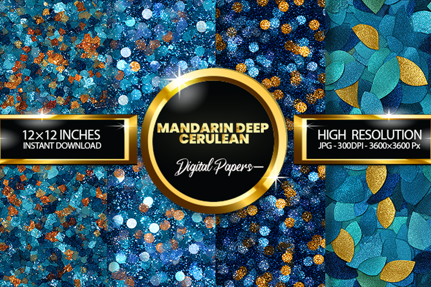 Mandarin Deep Cerulean Glitter Digital Papers - 04 Varitions