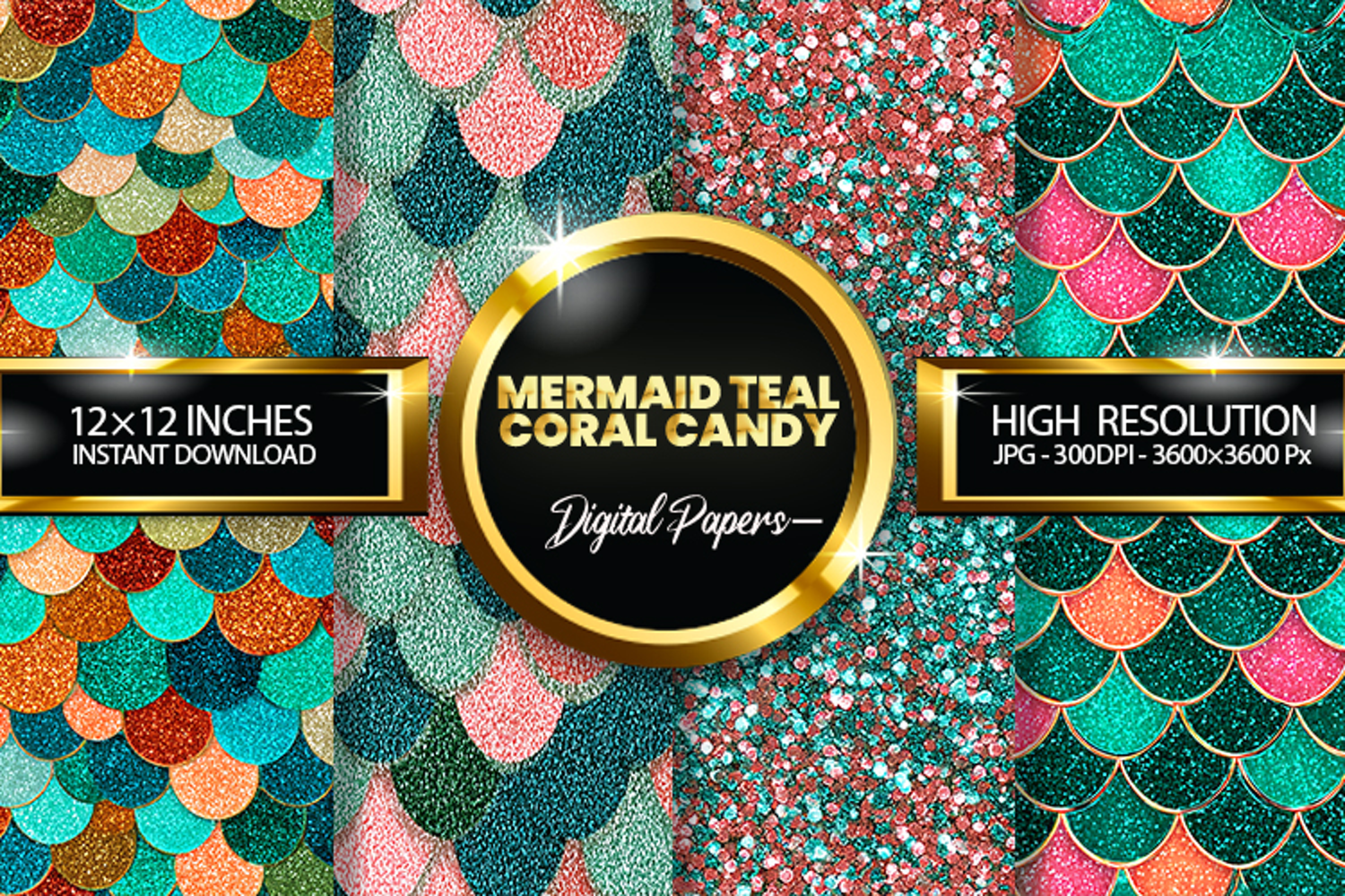 Mermaid Teal Coral Candy Glitter Digital Papers is perfect for Gift Wrapping, Promotional Items, Invitations, Wallpaper, Greeting Cards, Planners, Journals, Scrapbook, Notebook Covers, T-Shirts, Mugs, Tumbler, Puzzles, Crafting and much more. This Digital Paper is a popular choice for people on the go.
