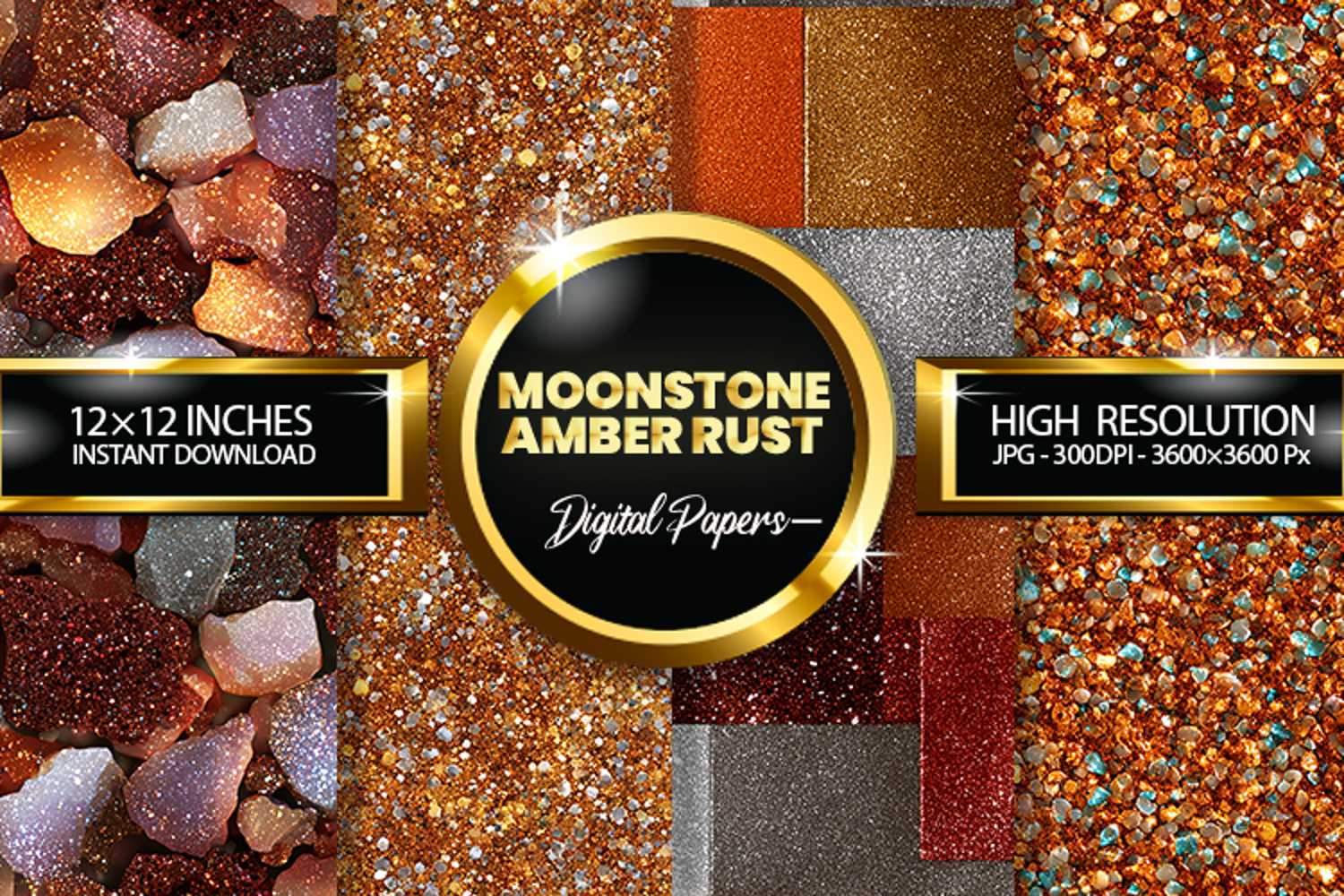 Moonstone Amber Rust Glitter Digital Papers - 04 Varitions