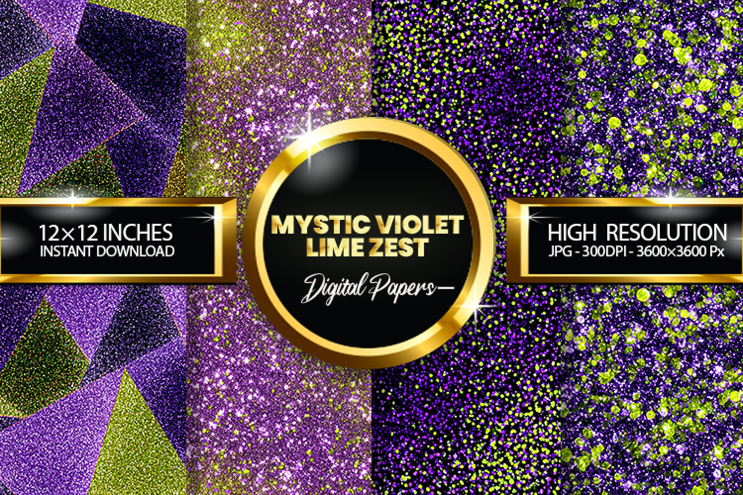 Mystic Violet Lime Zest Glitter Digital Papers - 04 Varition