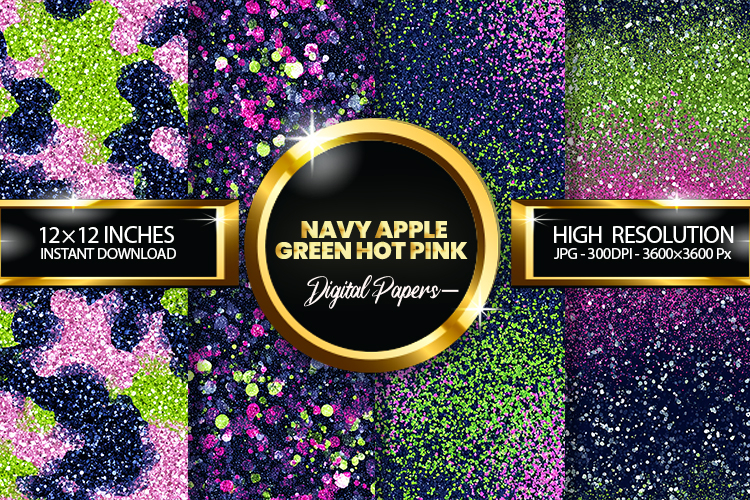 Navy Apple Green Pink Glitter Digital Papers - 04 Varitions