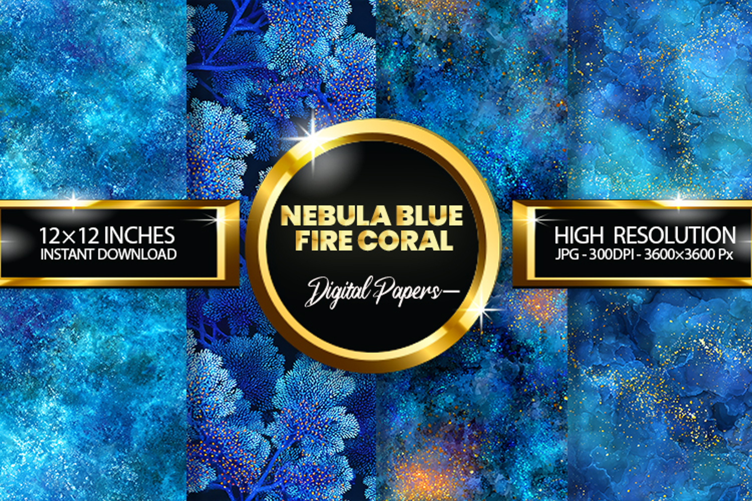 Nebula Blue Fire Coral Glitter Digital Papers - 04 Varitions