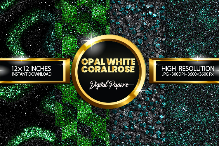 Opal White CoralRose Glitter Digital Papers - 04 Varitions