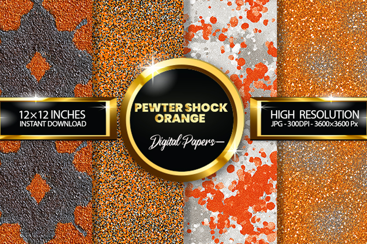 Pewter Shock Orange Glitter Digital Papers - 04 Varitions