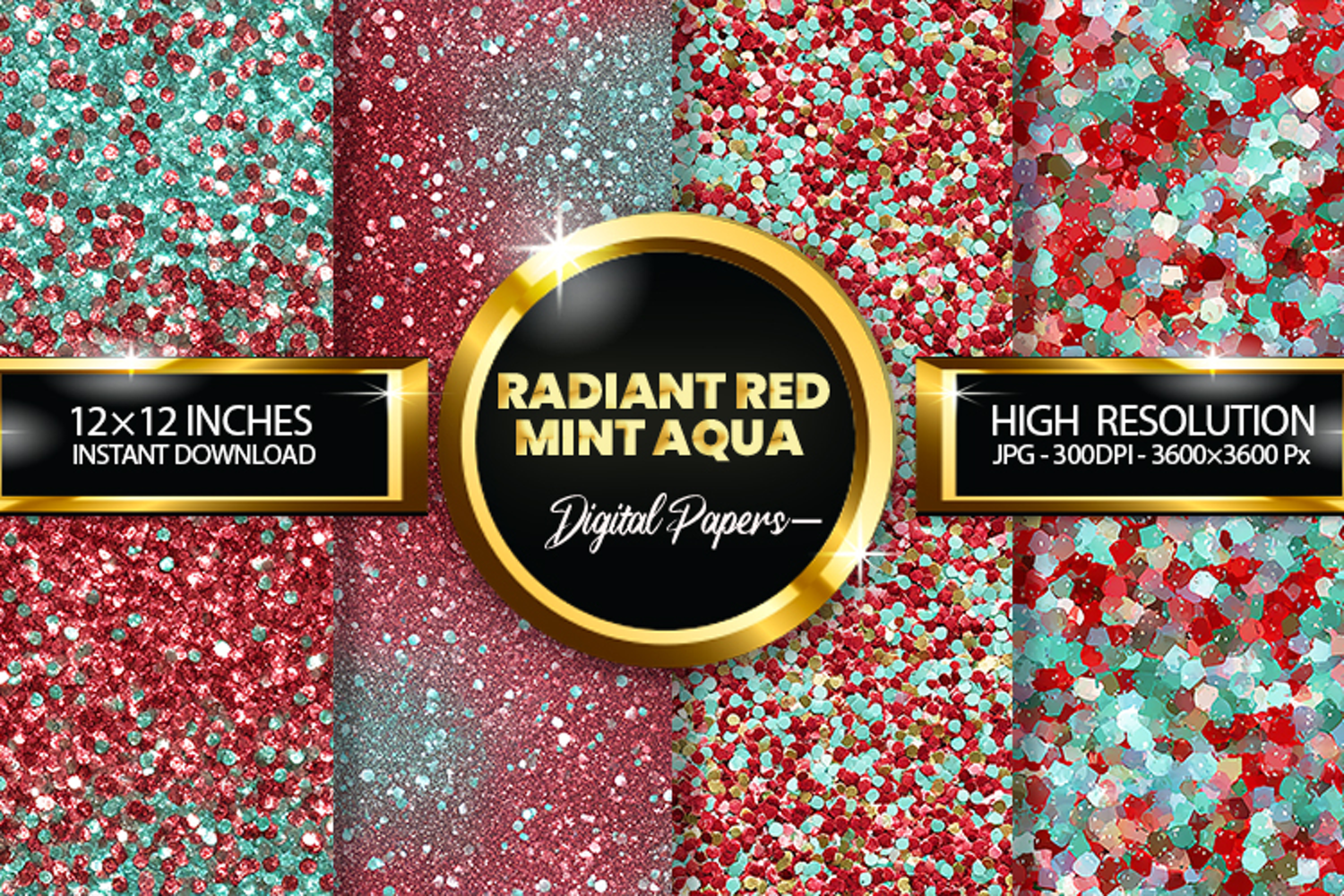 Radiant Red Mint Aqua Glitter Digital Papers - 04 Varitions