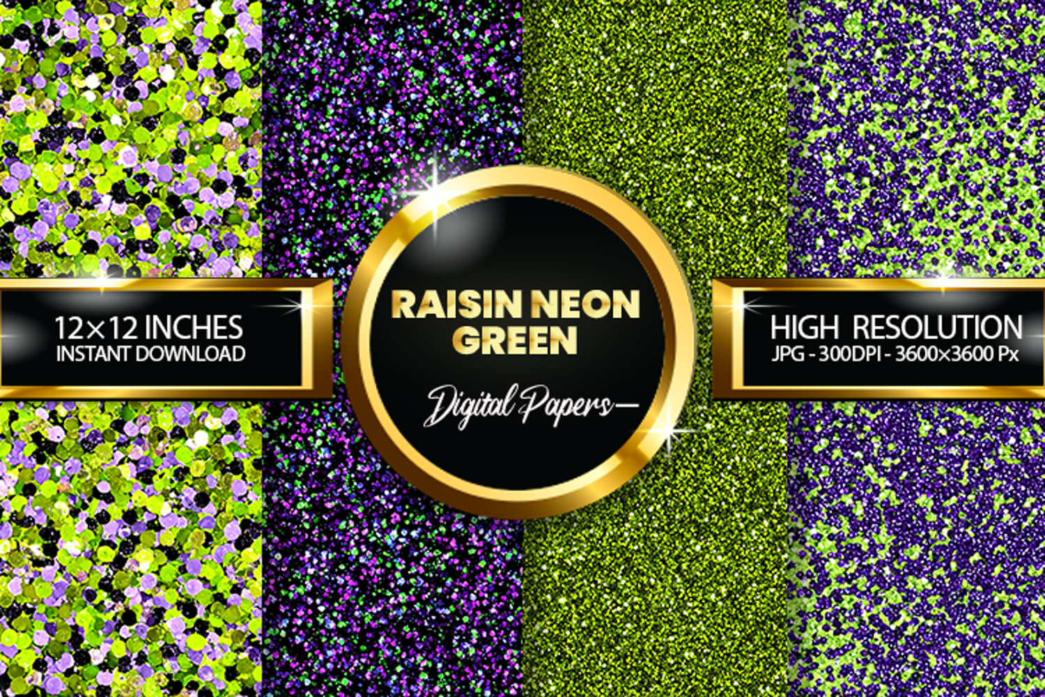 Similar Design Products to Raisin Neon Green Glitter Digital Papers - 04 Varitions