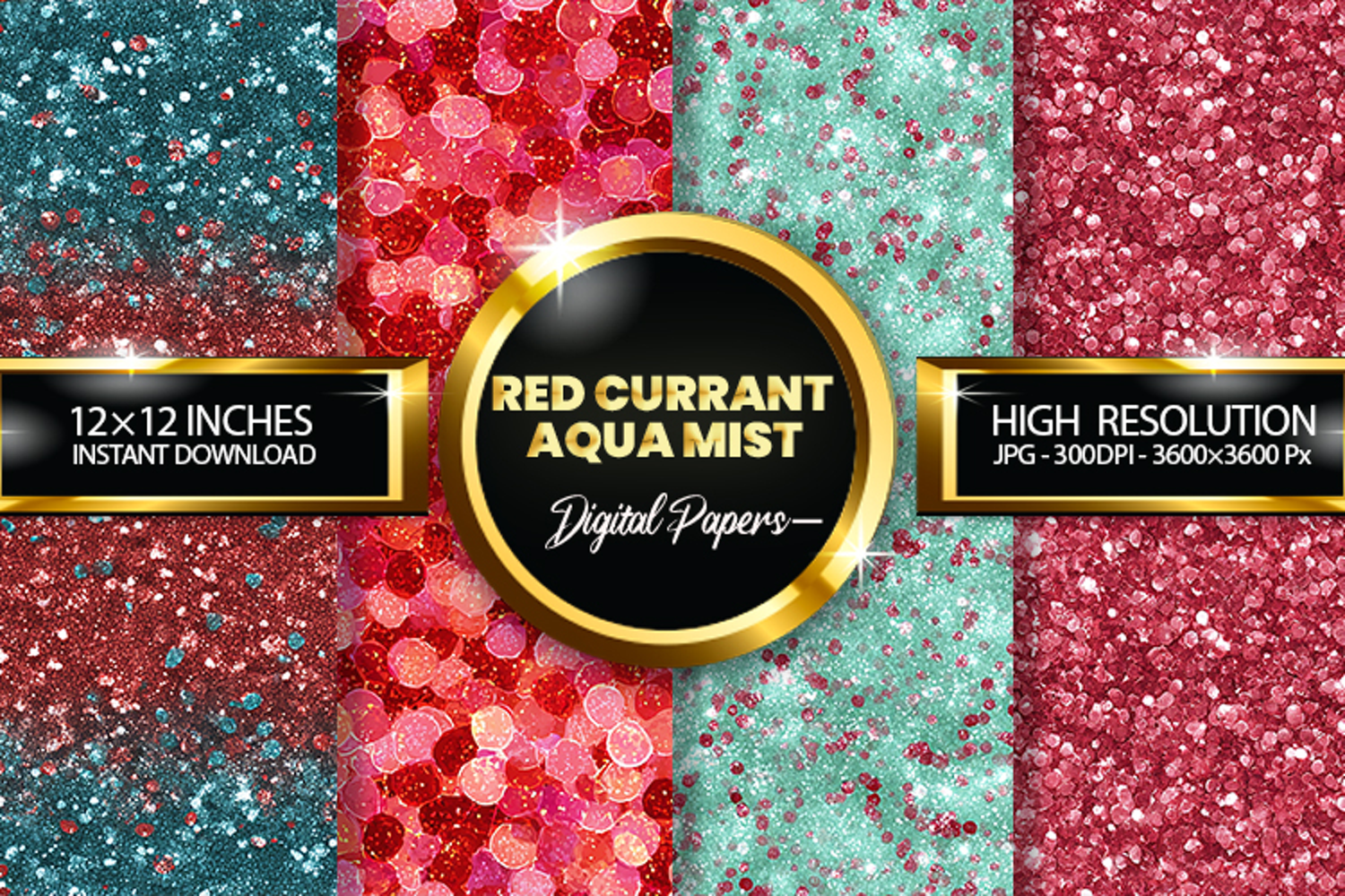 Red Currant Aqua Mist Glitter Digital Papers - 04 Varitions