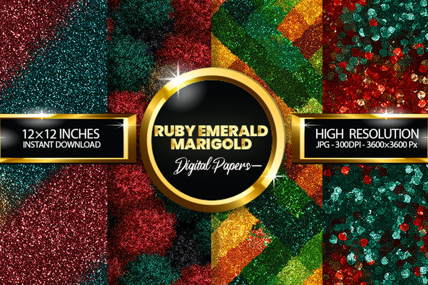 Similar Design Products to Ruby Emerald Marigold Glitter Digital Papers - 04 Varitions