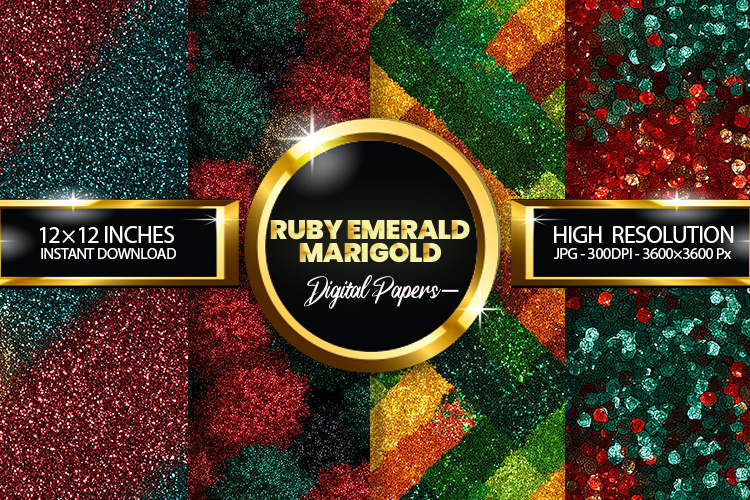 Ruby Emerald Marigold Glitter Digital Papers - 04 Varitions
