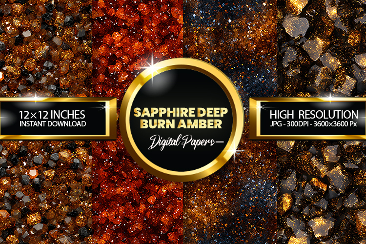 Sapphire Deep Burn Amber Glitter Digital Papers- 04 Varition