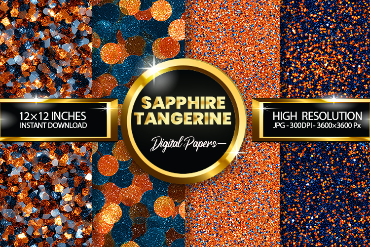 Sapphire Tangerine Glitter Digital Papers - 04 Varitions