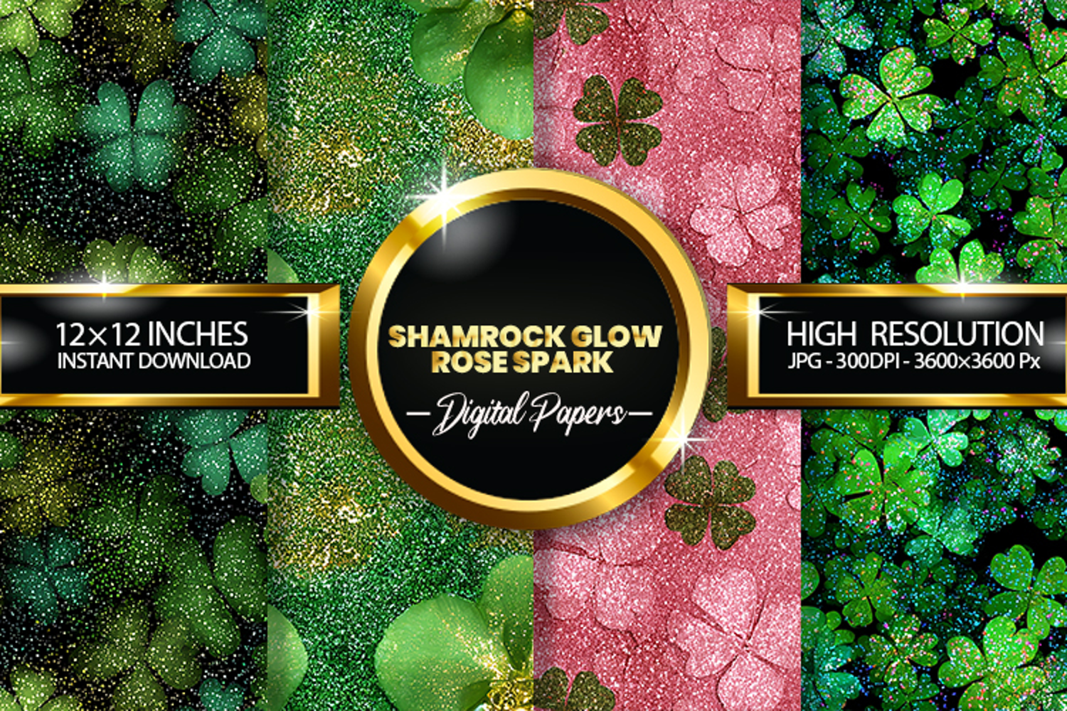 Shamrock Glow Rose Spark Glitter Digital Papers- 04 Varition