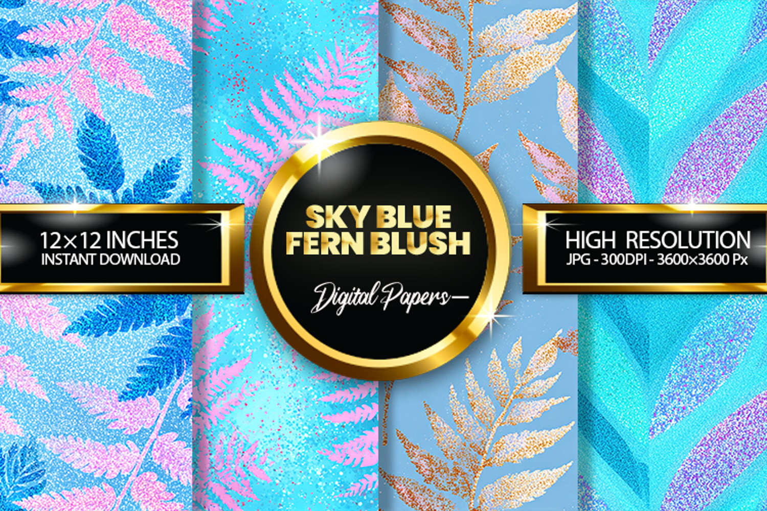 Sky Blue Fern Blush Glitter Digital Papers is perfect for Gift Wrapping, Promotional Items, Invitations, Wallpaper, Greeting Cards, Planners, Journals, Scrapbook, Notebook Covers, T-Shirts, Mugs, Tumbler, Puzzles, Crafting and much more. This Digital Paper is a popular choice for people on the go.