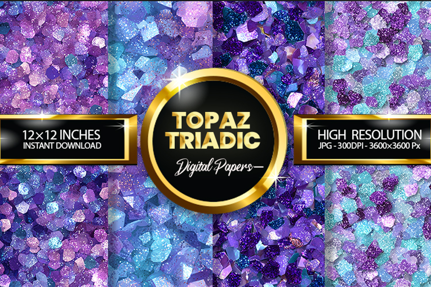 Topaz Triadic Glitter Digital Papers is perfect for Gift Wrapping, Promotional Items, Invitations, Wallpaper, Greeting Cards, Planners, Journals, Scrapbook, Notebook Covers, T-Shirts, Mugs, Tumbler, Puzzles, Crafting and much more. This Digital Paper is a popular choice for people on the go.
