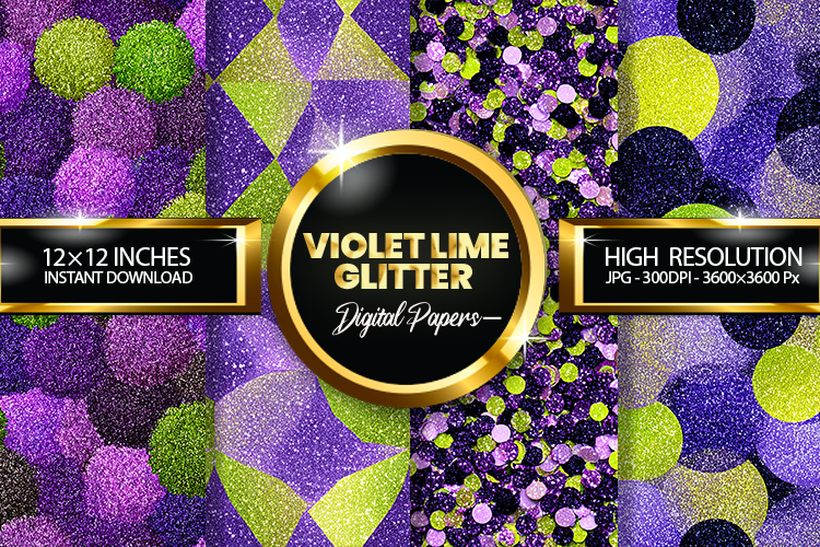 Violet Lime Glitter Digital Papers - 04 Varitions