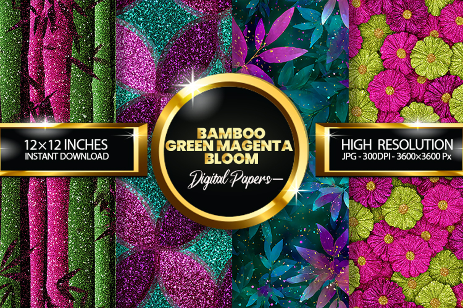 Bamboo Green Magenta Bloom Glitter Digital Papers is perfect for Gift Wrapping, Promotional Items, Invitations, Wallpaper, Greeting Cards, Planners, Journals, Scrapbook, Notebook Covers, T-Shirts, Mugs, Tumbler, Puzzles, Crafting and much more. This Digital Paper is a popular choice for people on the go.