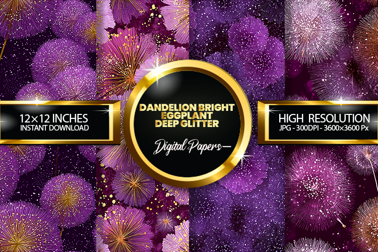 Similar Design Products to Dandelion Bright Eggplant Deep Glitter Digital Papers