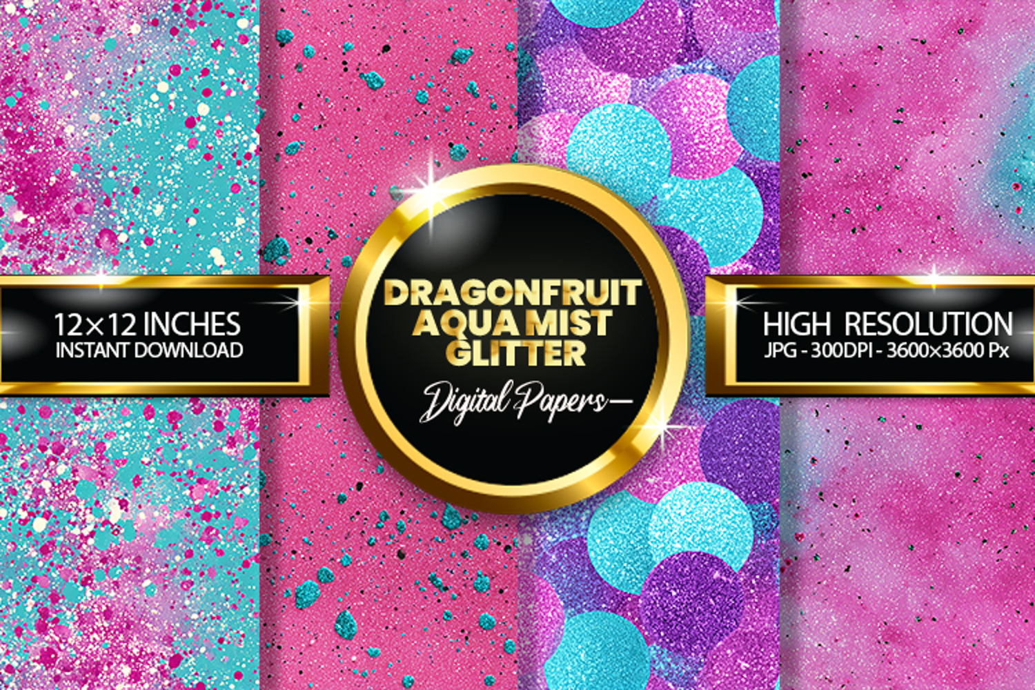Similar Design Products to Dragonfruit Aqua Mist Glitter Digital Papers