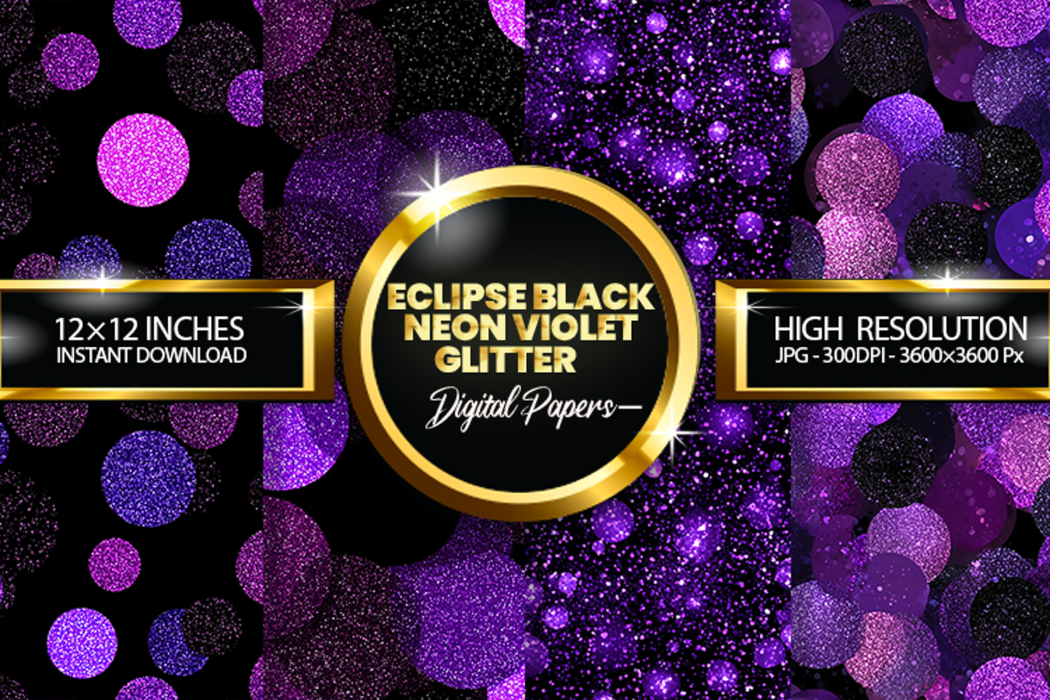 Similar Design Products to Eclipse Black Neon Violet Glitter Digital Papers