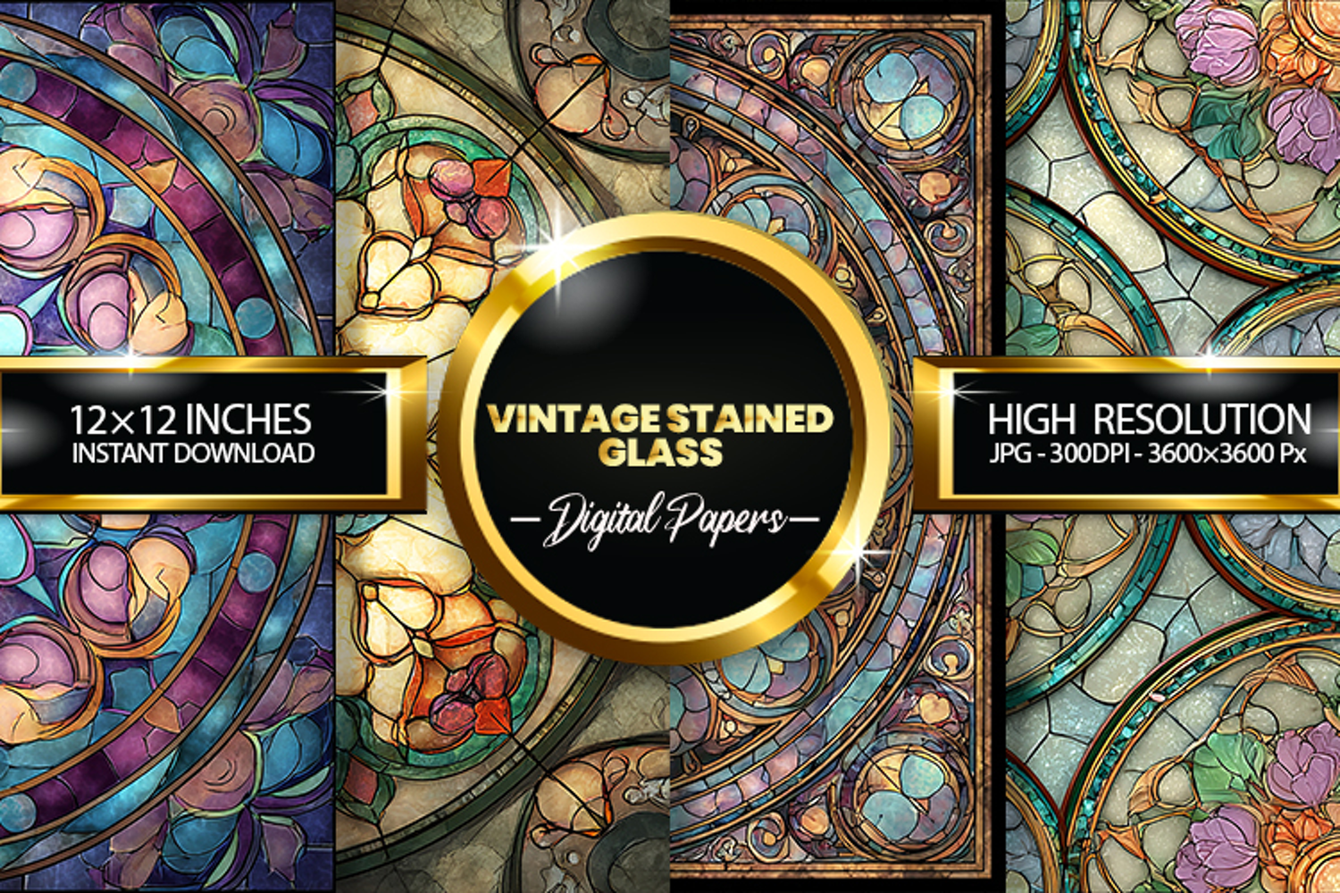 Vintage Stained Glass Digital Papers is perfect for Gift Wrapping, Promotional Items, Invitations, Wallpaper, Greeting Cards, Planners, Journals, Scrapbook, Notebook Covers, T-Shirts, Mugs, Tumbler, Puzzles, Crafting and much more. This Digital Paper is a popular choice for people on the go.