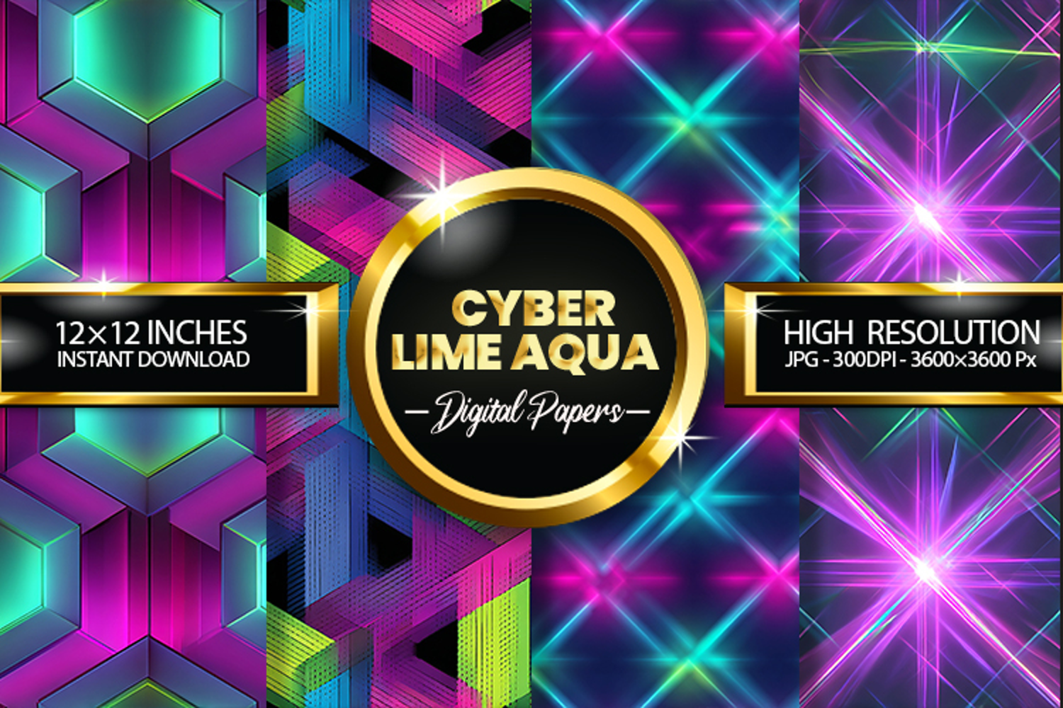 Cyber Lime Aqua Digital Papers - 04 variations