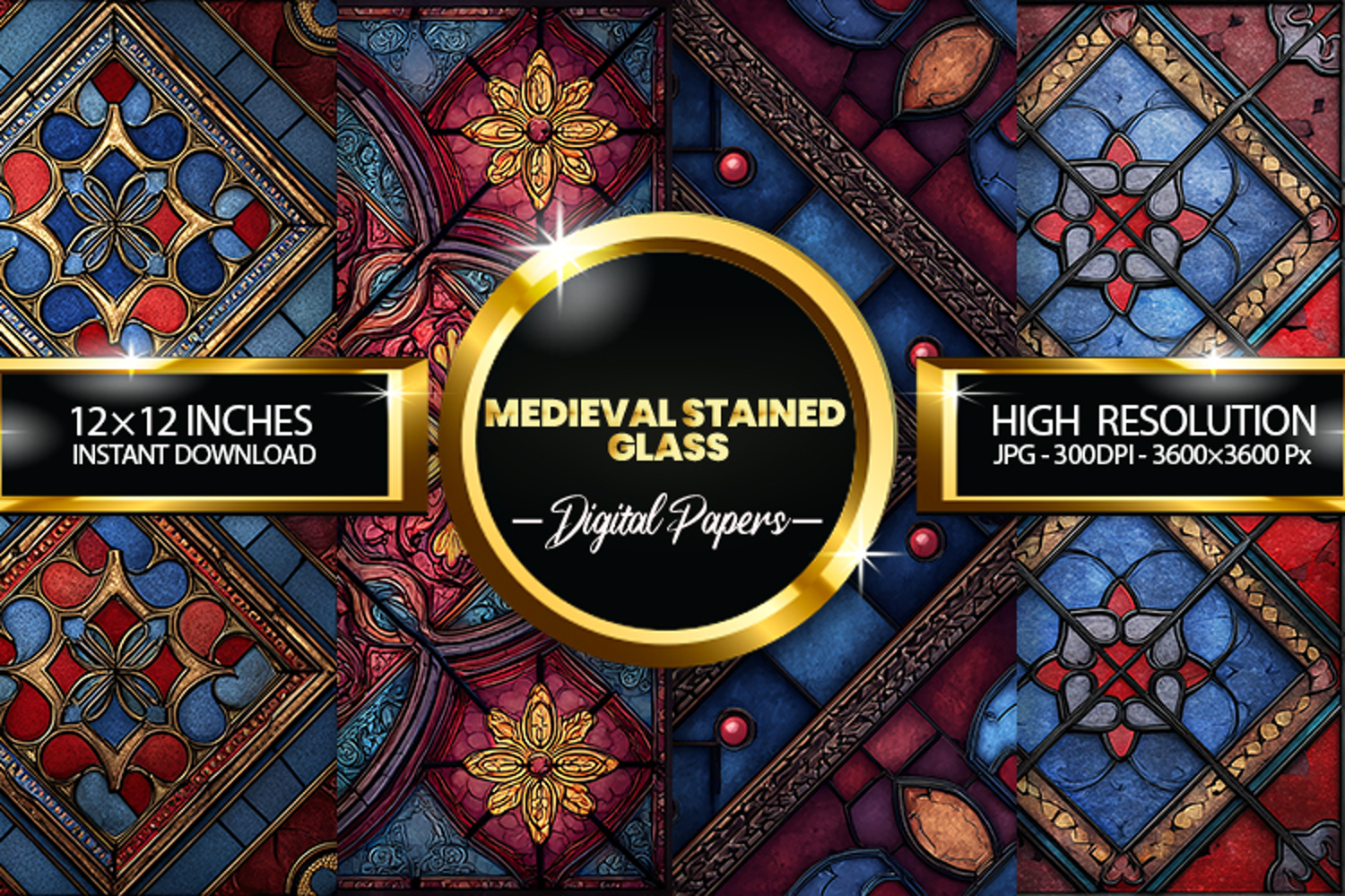 Medieval Stained Glass Digital Papers is perfect for Gift Wrapping, Promotional Items, Invitations, Wallpaper, Greeting Cards, Planners, Journals, Scrapbook, Notebook Covers, T-Shirts, Mugs, Tumbler, Puzzles, Crafting and much more. This Digital Paper is a popular choice for people on the go.