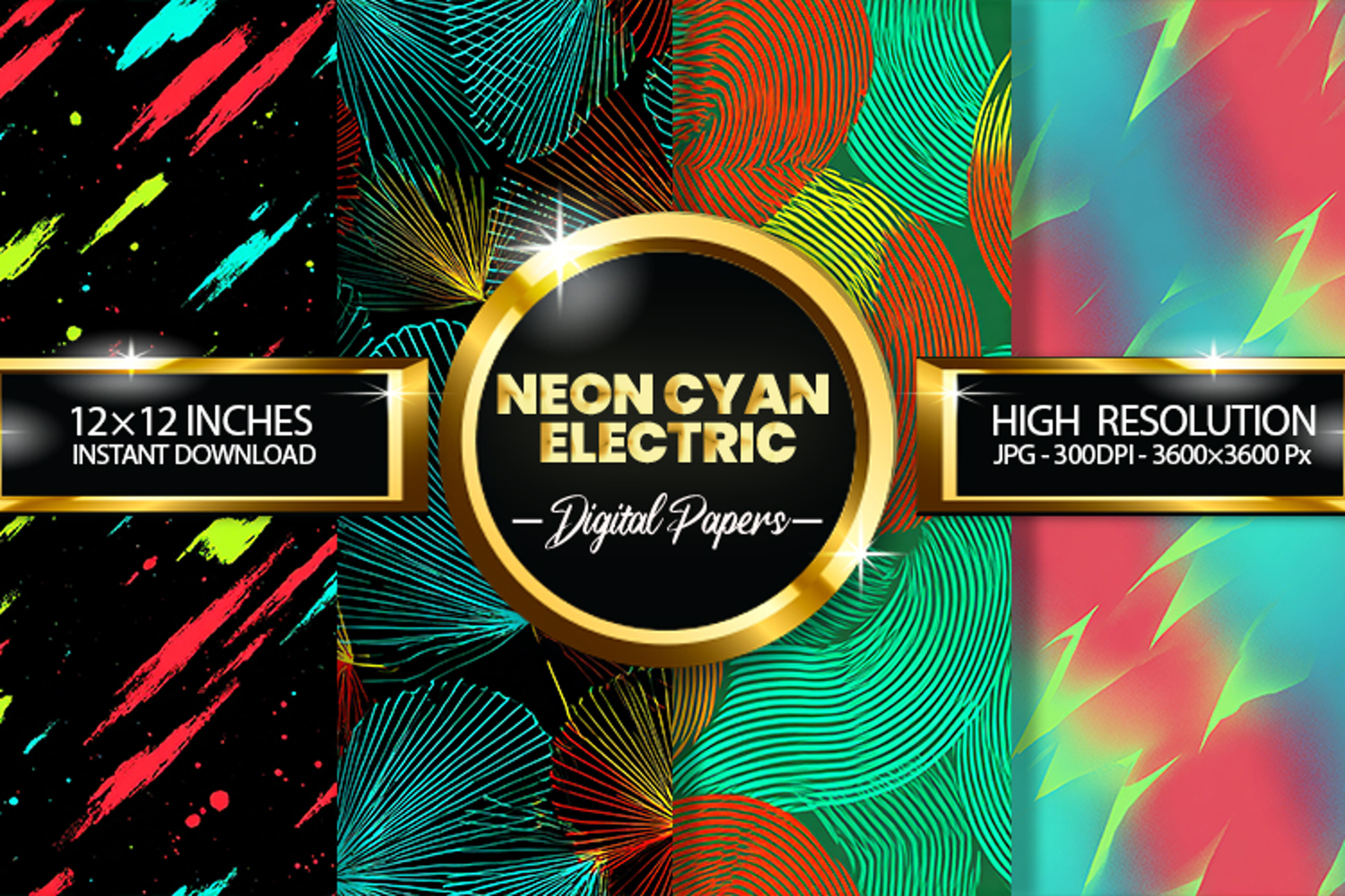 Neon Cyan Electric Digital Papers - 04 variations