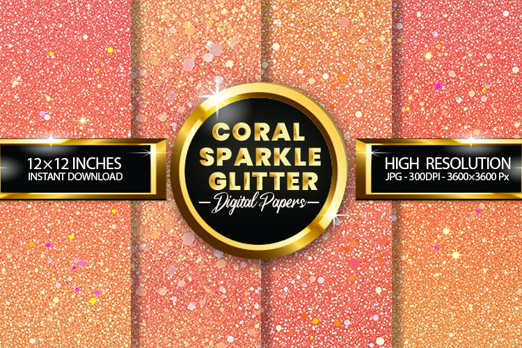 Coral Sparkle Glitter Digital Papers - 04 variations