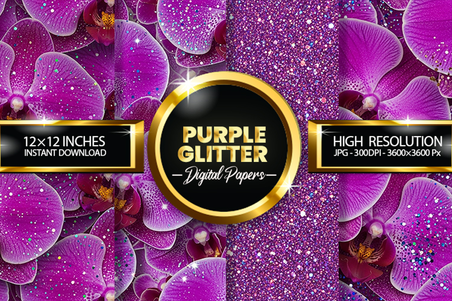 Floral Glitter Digital Papers - 04 variations