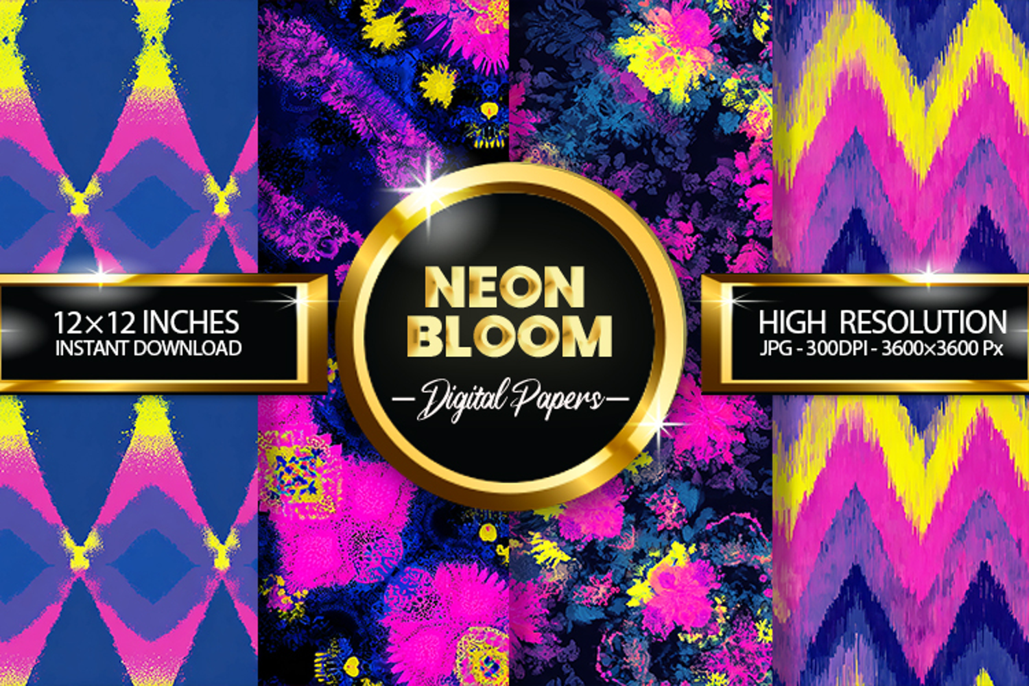 Neon Bloom Digital Papers - 04 variations