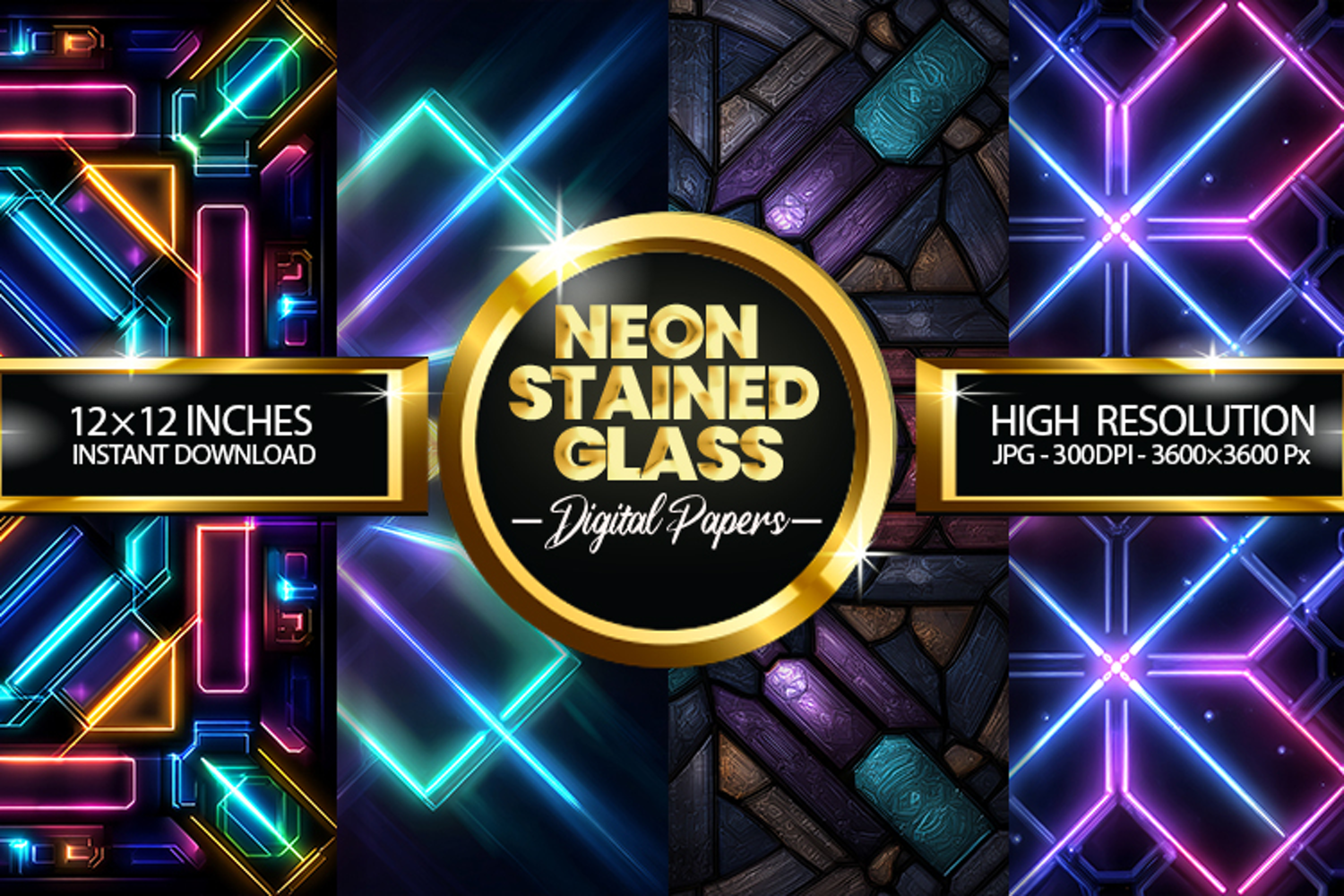 Neon Stained Glass Digital Papers - 04 variations