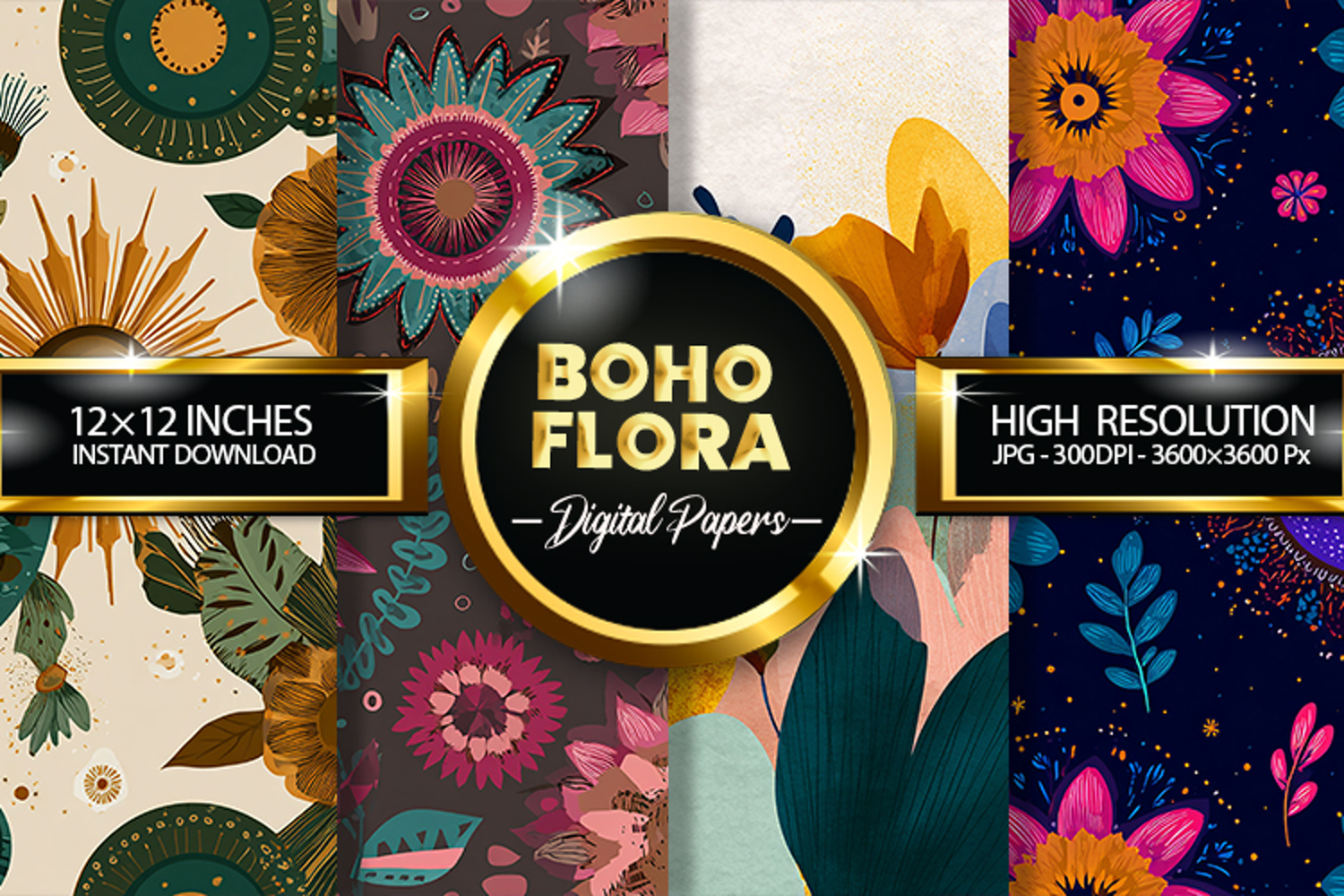 Boho Flora Digital Papers is perfect for Gift Wrapping, Promotional Items, Invitations, Wallpaper, Greeting Cards, Planners, Journals, Scrapbook, Notebook Covers, T-Shirts, Mugs, Tumbler, Puzzles, Crafting and much more. This Digital Paper is a popular choice for people on the go.