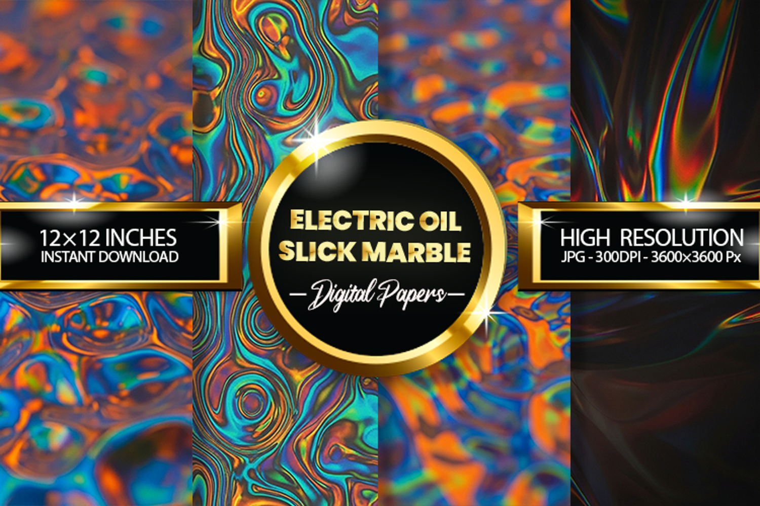 Electric Oil Slick Marble Digital Papers - 04 Variations