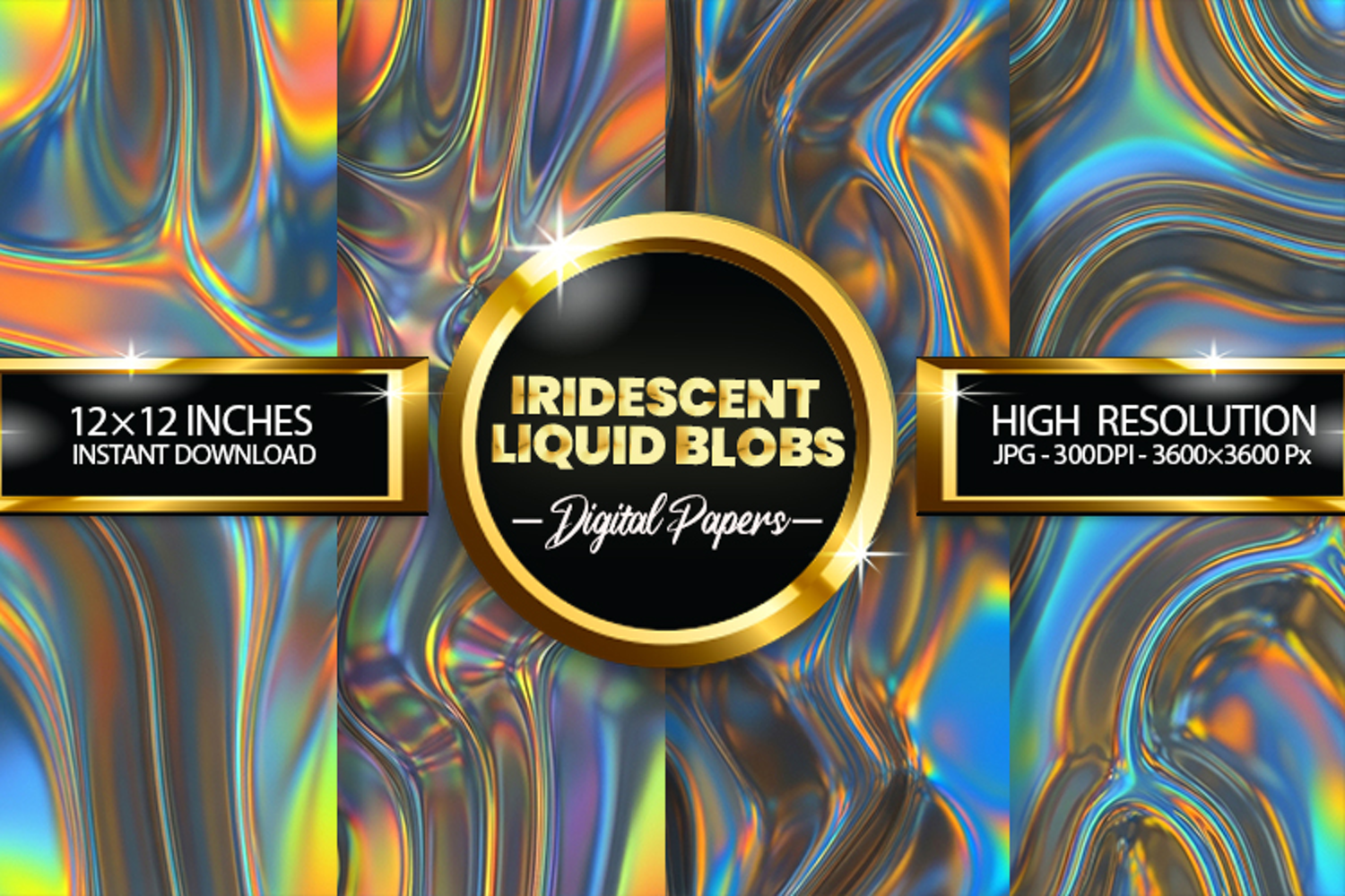 Iridescent Liquid Blobs Digital Papers - 04 Variations