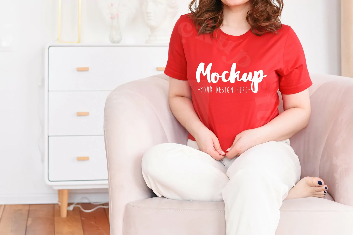 Similar Design Products to Bella Canvas 3001 Red T-shirt Mockup | Boho Model Mockup