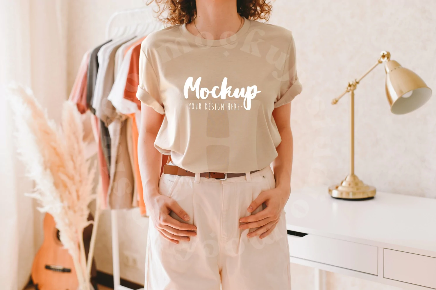 Tan 3001 Bella Canvas Tshirt Mockup | Boho Model Mockup