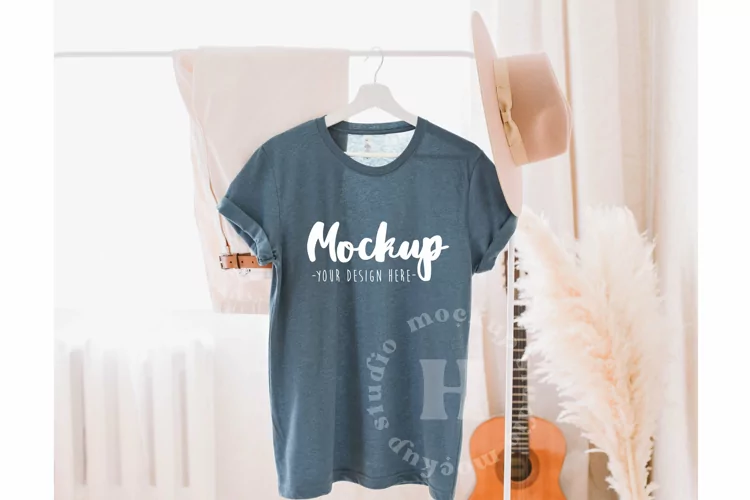 Heather Slate 3001 Bella Canvas Hanging Tshirt Mockup | Boho