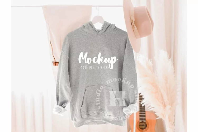 Sport Grey 18500 Gildan Hanging Hoodie Mockup | Boho Mockup