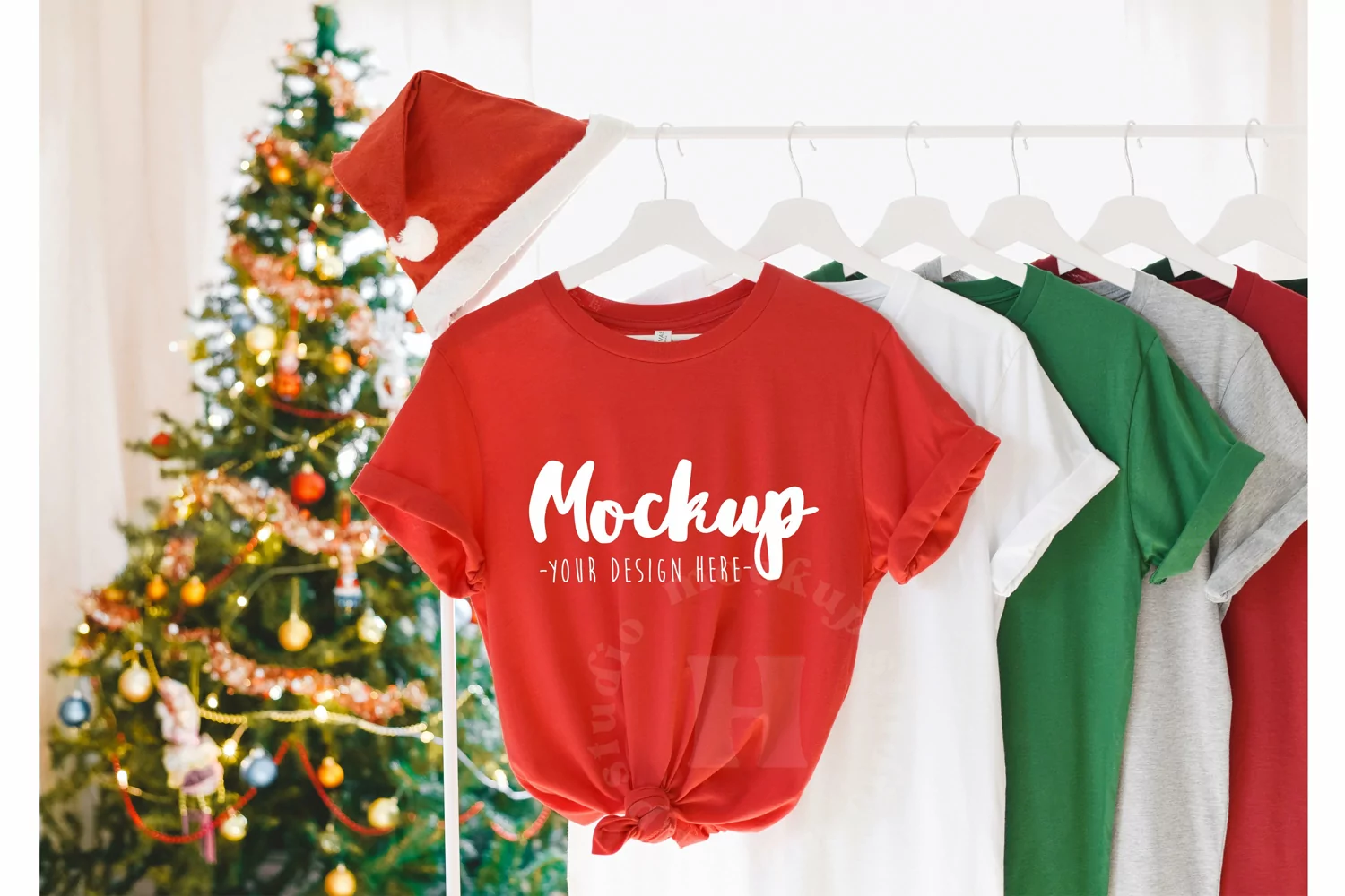 Red 3001 Bella Canvas Hanging Tshirt Mockup | Christmas