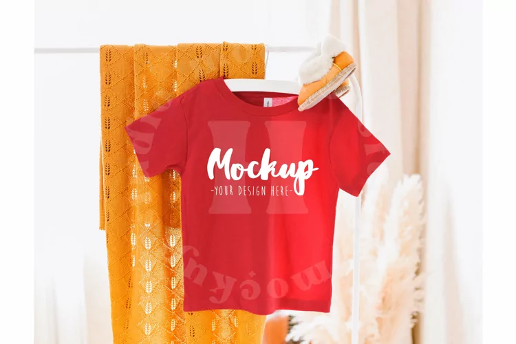 Red 3001T Bella Canvas Toddler Hanging Tshirt Mockup | Kids