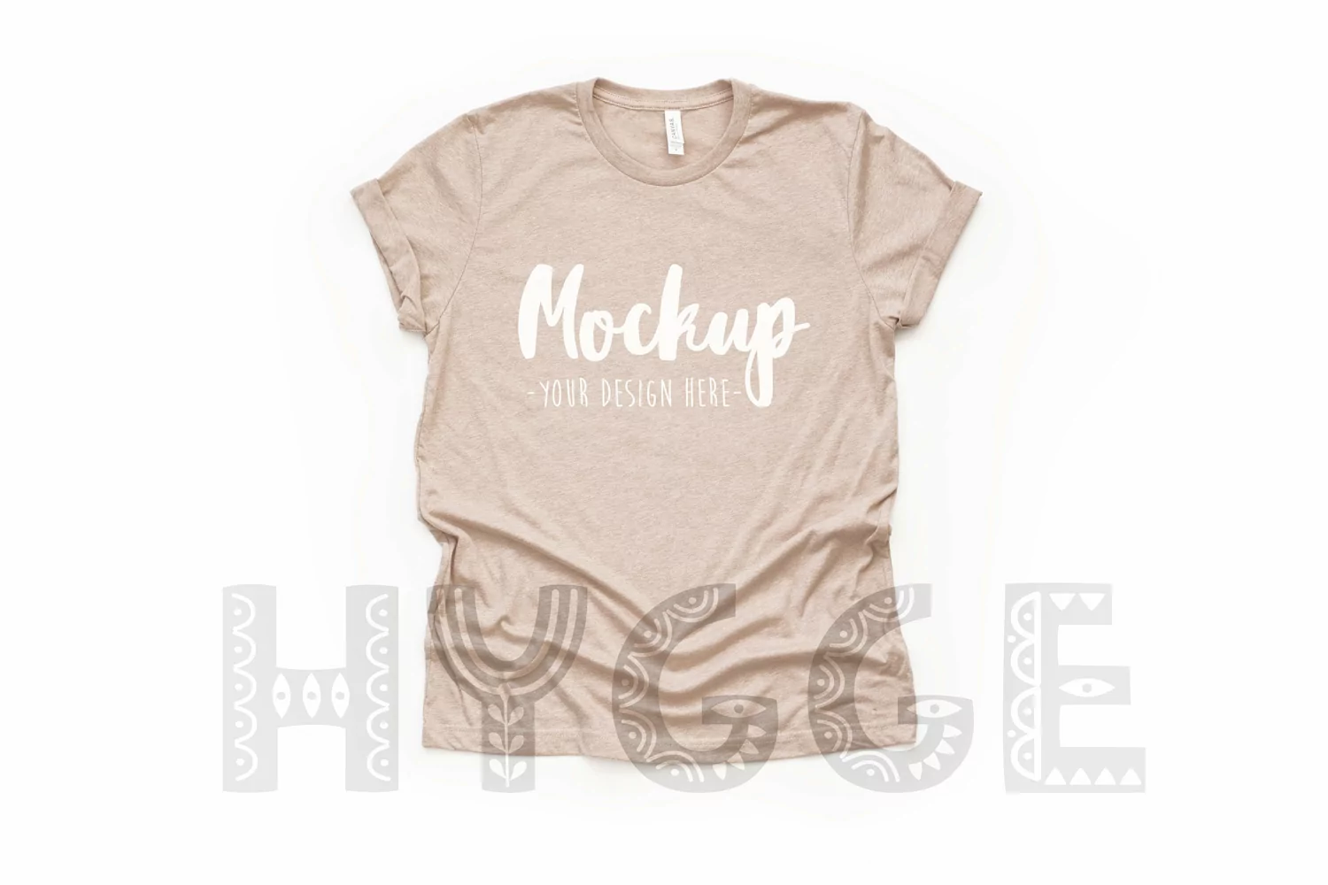 Tshirt mockup, Heather Tan Bella Canvas 3001 tshirt mockup