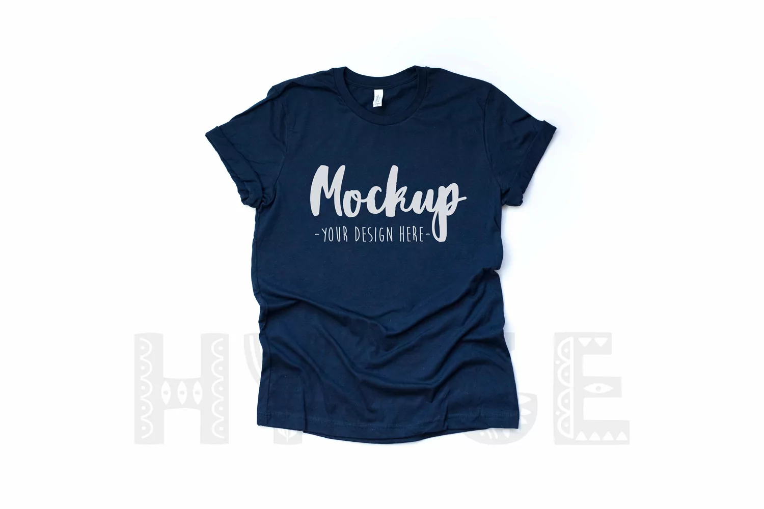 Tshirt mockup, Navy Bella Canvas 3001 tshirt mockup