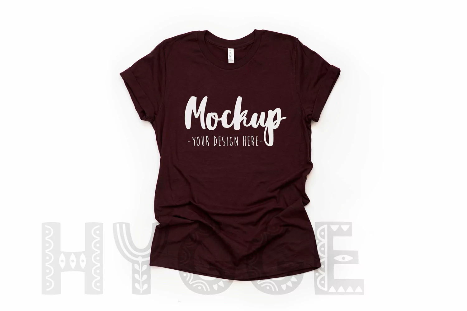 Tshirt mockup, Oxblood Black  Bella Canvas 3001 tshirt mockup